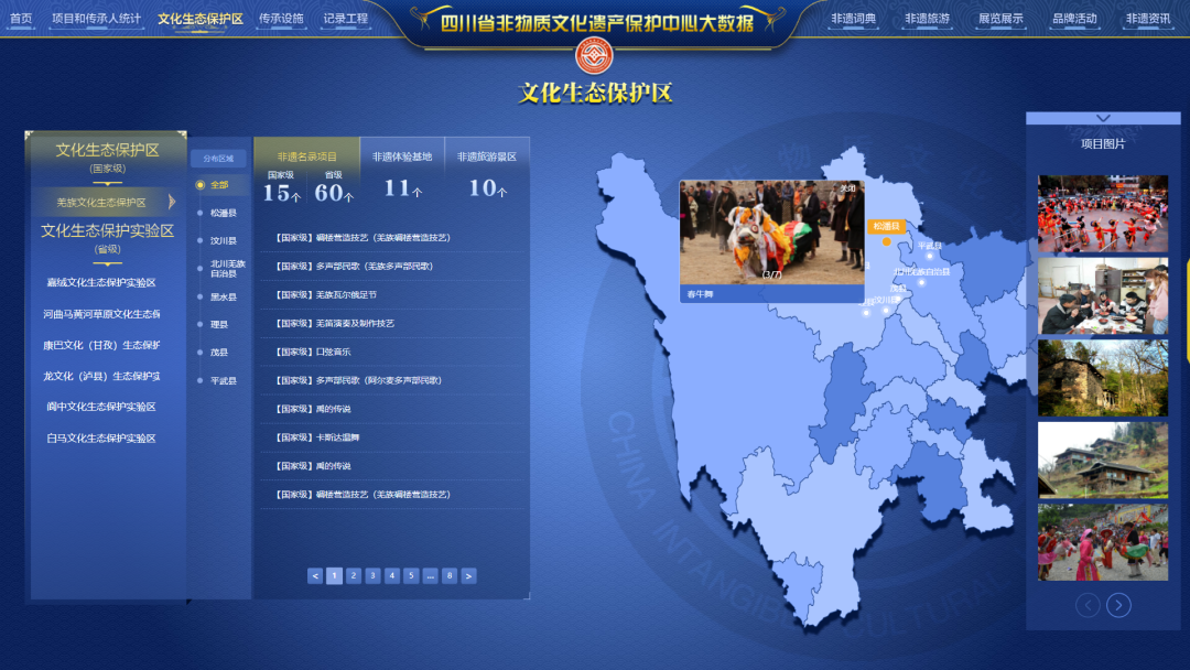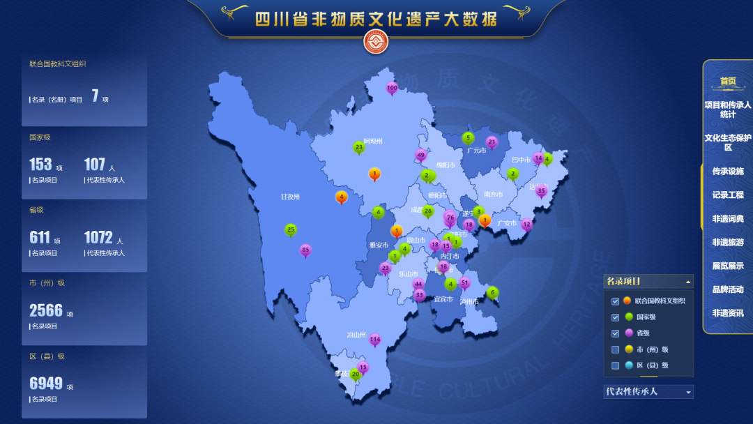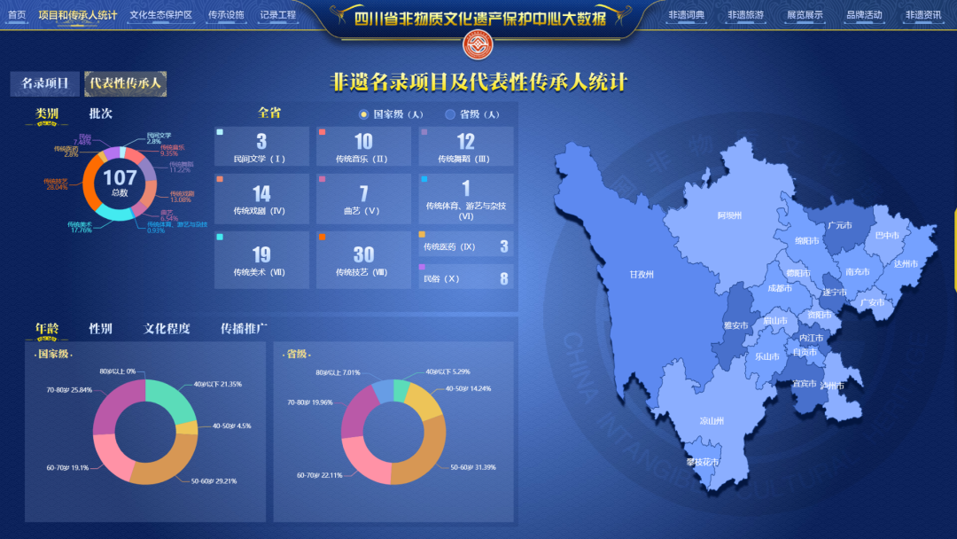 川投數(shù)科(原簡(jiǎn)稱:智勝集成)以四川非遺數(shù)字保護(hù)平臺(tái)前期建設(shè)成果為基礎(chǔ),通過(guò)對(duì)非遺數(shù)字資源庫(kù)數(shù)據(jù)的采集、整理、分析,進(jìn)一步形成可視化平臺(tái)的數(shù)據(jù)展示系統(tǒng),打造了以數(shù)字化方式記錄、保存和展示四川非遺資源的大數(shù)據(jù)平臺(tái),為非遺保護(hù)工作做好數(shù)據(jù)支撐,推動(dòng)非遺檔案數(shù)據(jù)向公眾開(kāi)放。