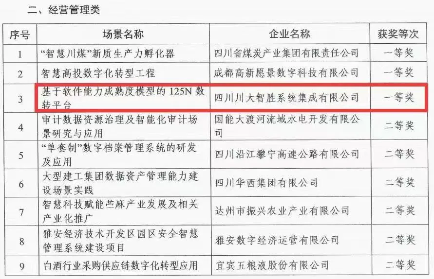此外,川投數(shù)科(原簡(jiǎn)稱:智勝集成)服務(wù)“智改數(shù)轉(zhuǎn)”的熱度正不斷升溫。日前,川投數(shù)科(原簡(jiǎn)稱:智勝集成)基于軟件能力成熟度模型集成(CMMI)打造的125N(1平臺(tái)、2中心、5應(yīng)用、N場(chǎng)景)數(shù)轉(zhuǎn)平臺(tái)獲四川省國(guó)資國(guó)企數(shù)字化轉(zhuǎn)型優(yōu)秀場(chǎng)景評(píng)選一等獎(jiǎng)。
