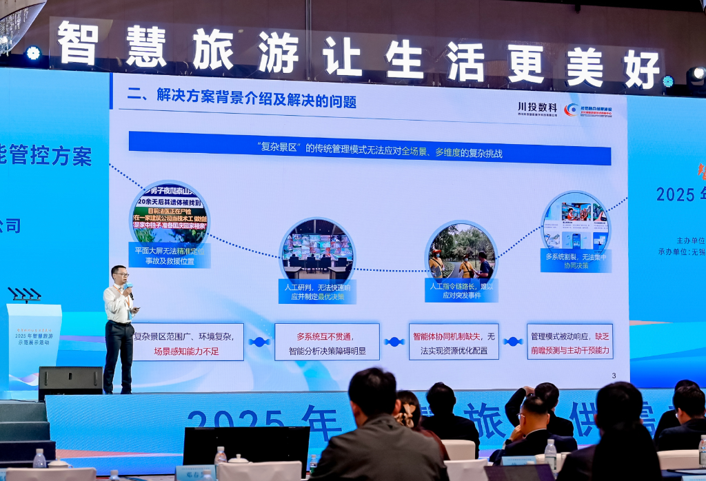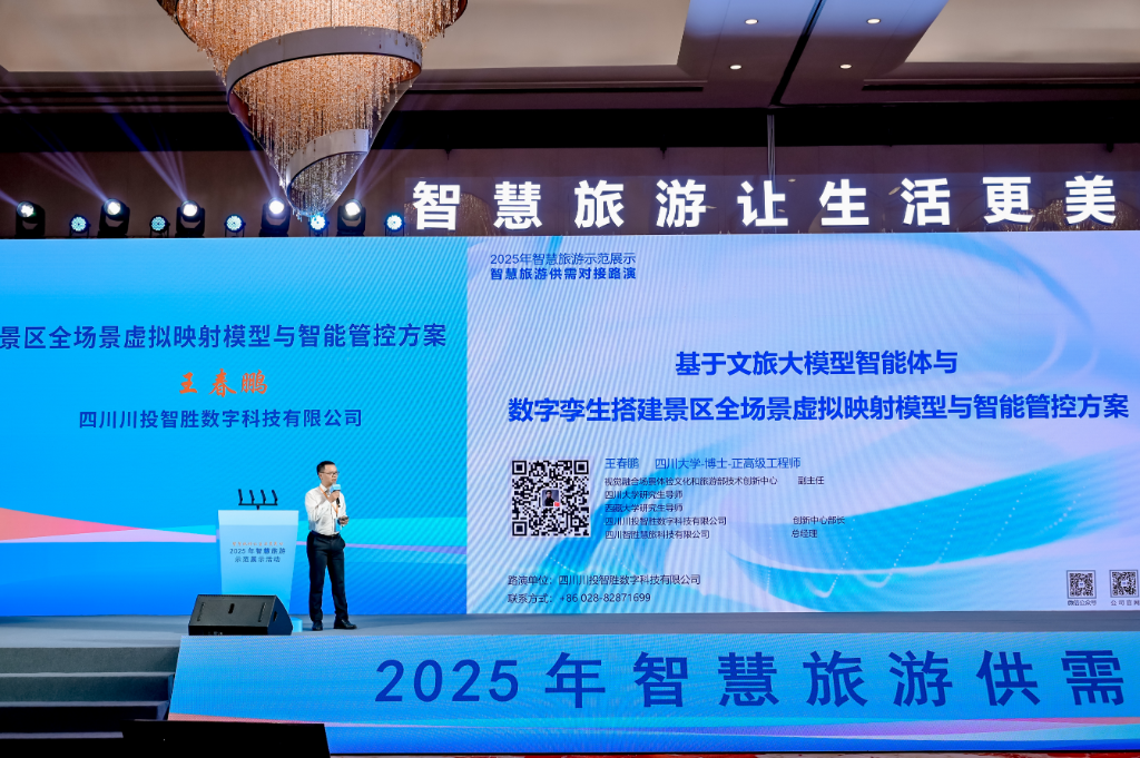 10月28日至29日,由文化和旅游部資源開發(fā)司與江蘇省文化和旅游廳、無錫市人民政府共同主辦的“2025年智慧旅游示范展示活動(dòng)”在江蘇無錫隆重舉行。作為智慧旅游領(lǐng)域的年度盛會(huì),本次活動(dòng)以“智慧旅游讓生活更美好”為主題,展示智慧旅游發(fā)展成果,推動(dòng)示范引領(lǐng)和供需對接,進(jìn)一步推動(dòng)《智慧旅游創(chuàng)新發(fā)展行動(dòng)計(jì)劃》落地見效。四川川投智勝數(shù)字科技有限公司(以下簡稱“川投數(shù)科”)憑借“基于文旅大模型智能體與數(shù)字孿生的景區(qū)全場景虛擬映射模型與智能管控方案”,再次驚艷亮相,成為行業(yè)焦點(diǎn)。作為四川能源發(fā)展集團(tuán)旗下所屬川投信息產(chǎn)業(yè)集團(tuán)有限公司控股的技術(shù)型領(lǐng)軍企業(yè),川投數(shù)科連續(xù)三年受邀參會(huì),其路演的創(chuàng)新實(shí)踐案例獲得了專家團(tuán)隊(duì)高度認(rèn)可,成為行業(yè)標(biāo)桿案例。